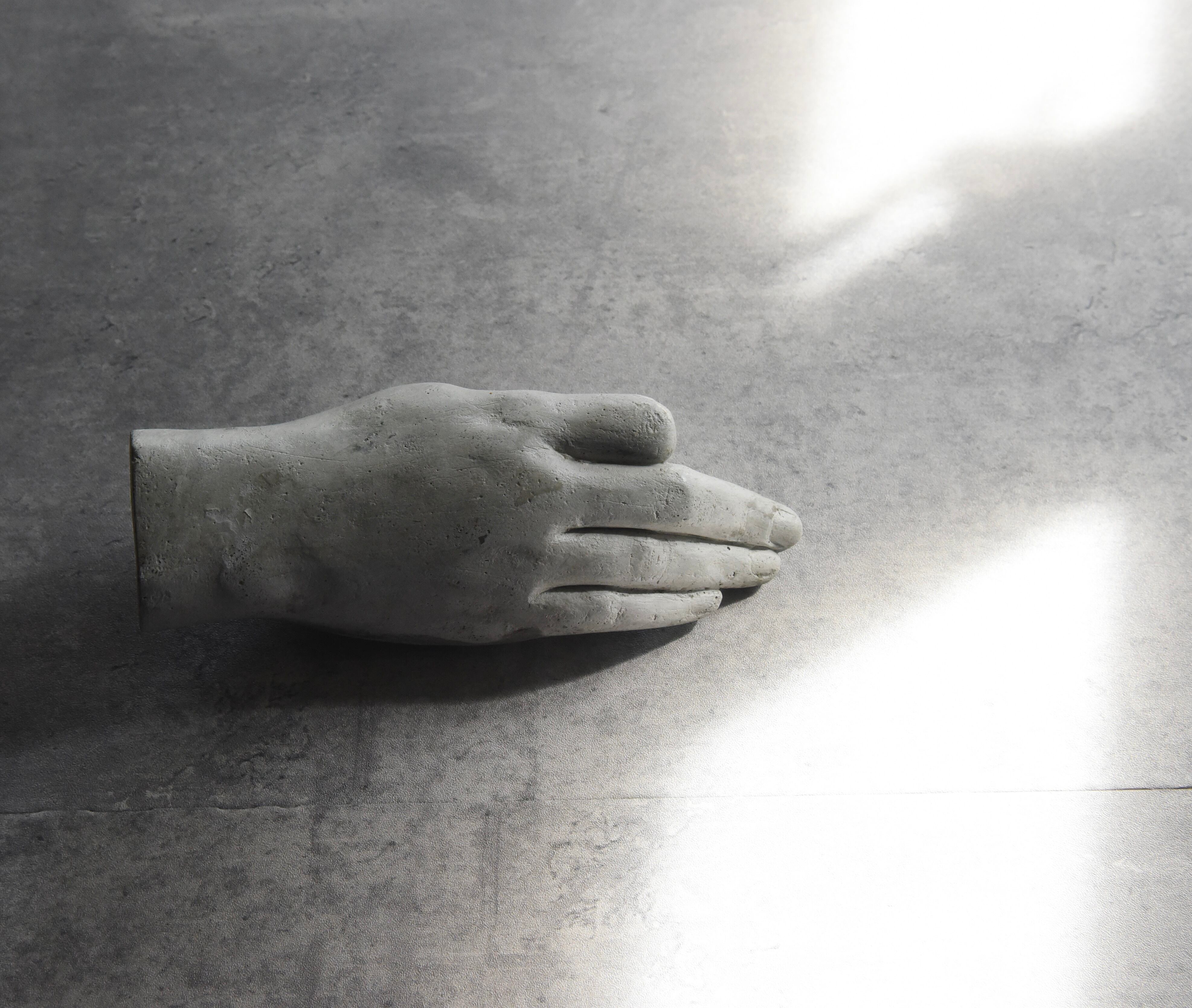 人差し指と親指で、お香を摘んでいるように見せるデザインです。
