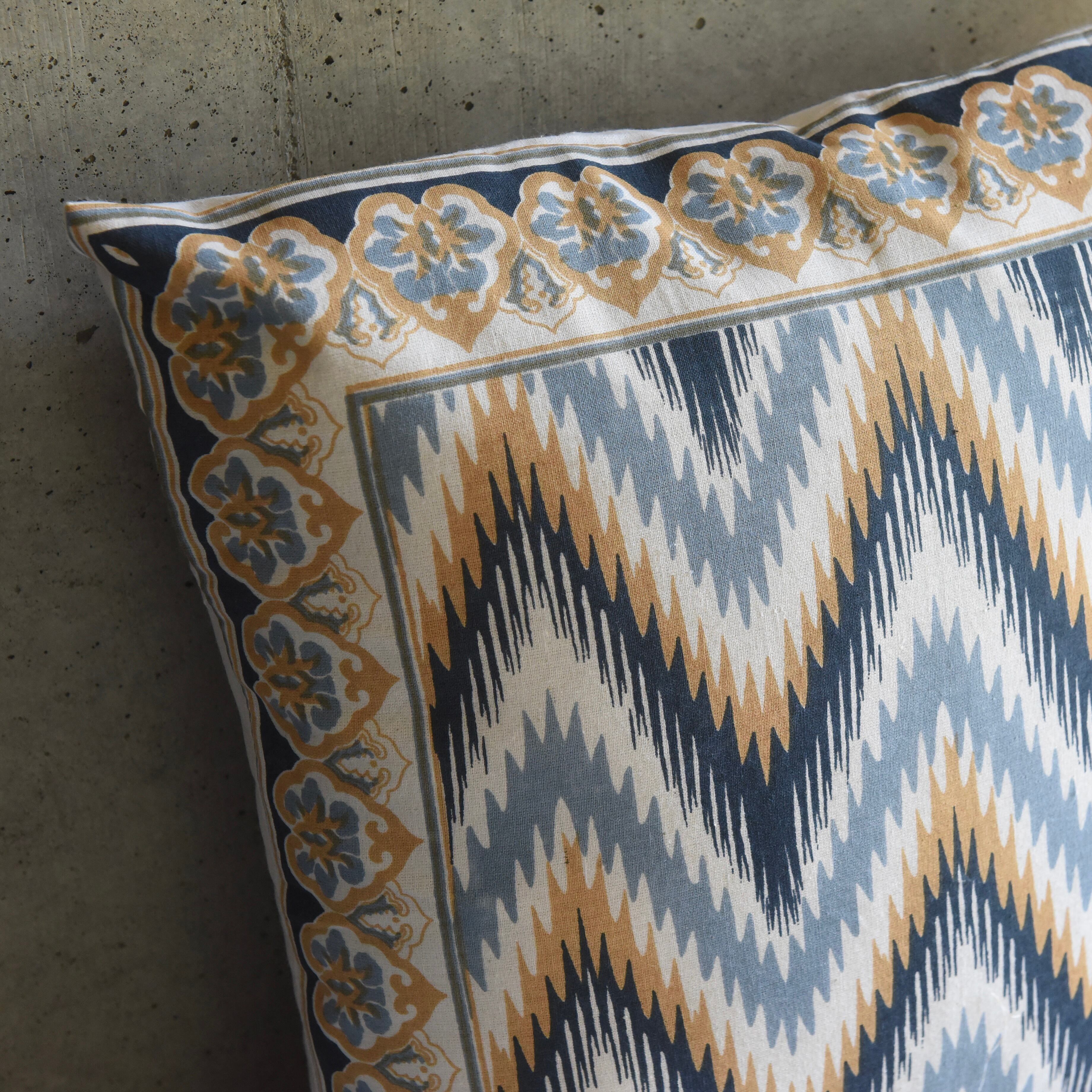 気軽に伝統工芸を楽しむ ブロックプリントのクッションカバー ギザギザ <from India>