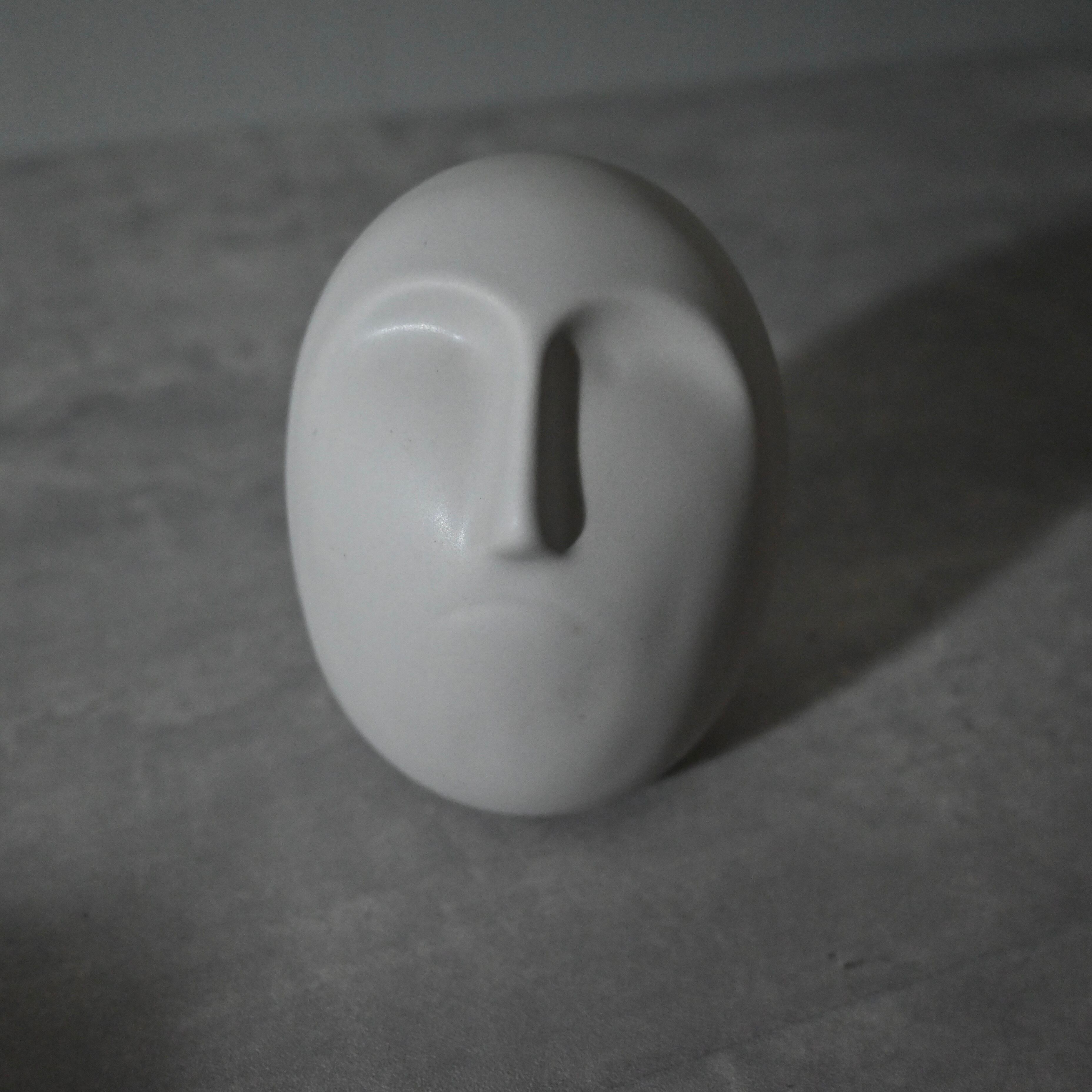 マットな質感の艶消し陶器でつくられたフェイスオブジェは、ラウンド型とオーバル型の2種類。2つ並べて飾っても絵になります。