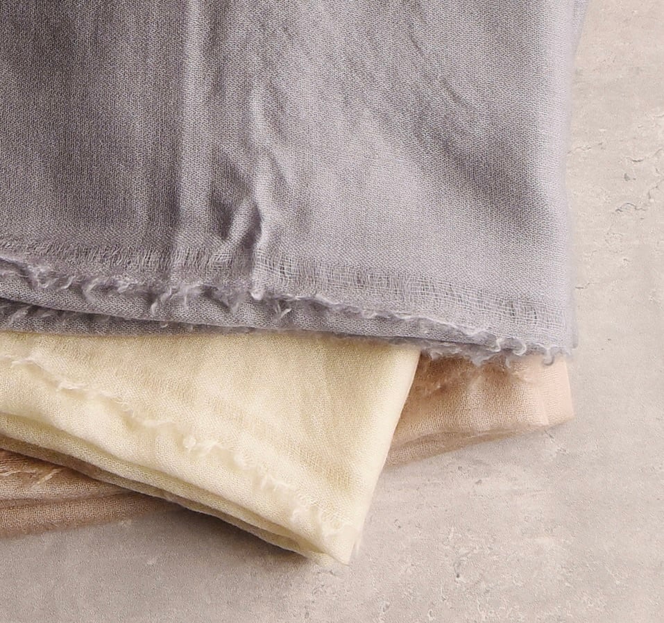 一度触れてしまったら、他のカシミヤにはもう戻れないくらいの心地よさと、自信を持ってお勧すすめできるストールです。