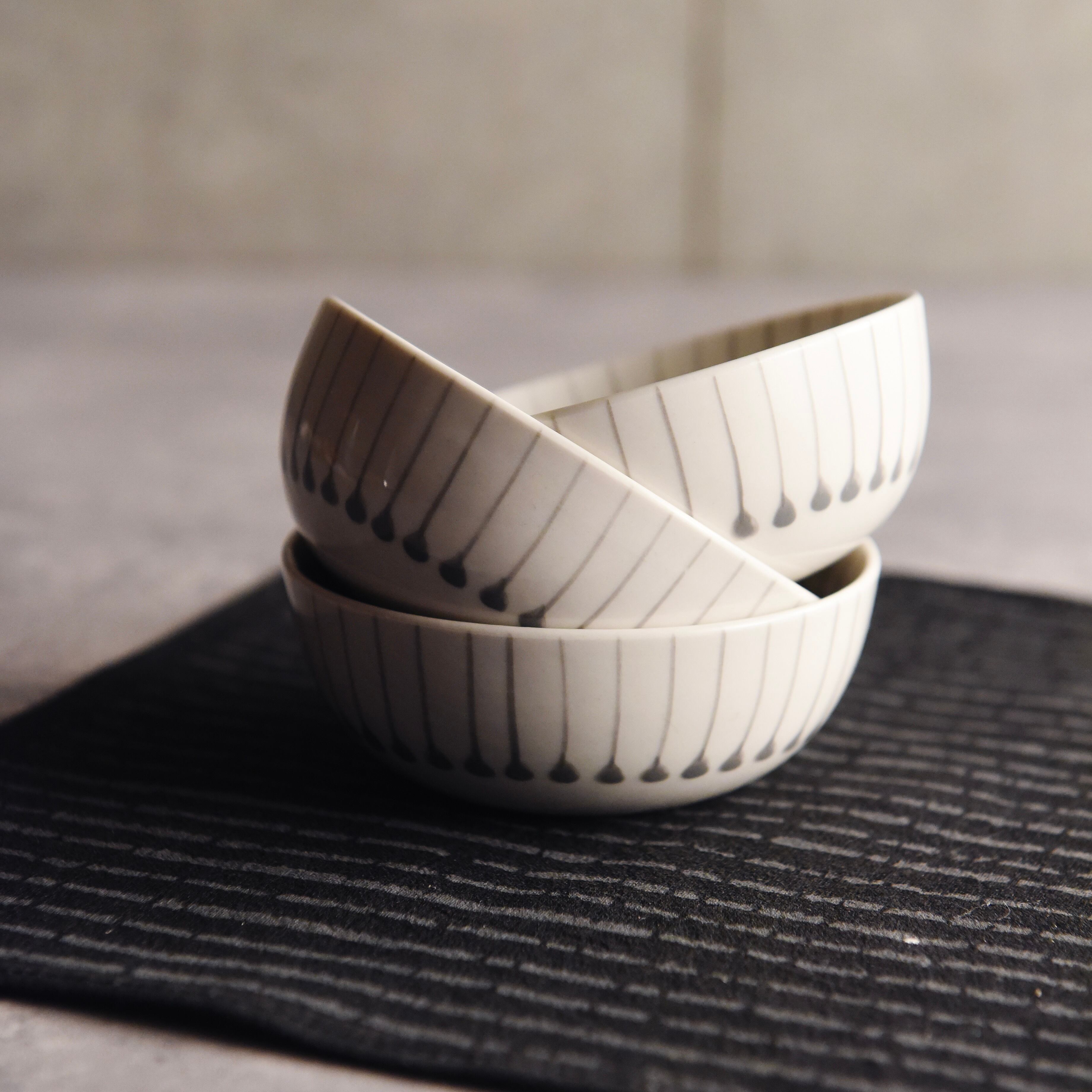 やさしい模様のアクセント グレーライン柄小鉢【バッチャン(Bát Tràng)焼】<from Vietnam>