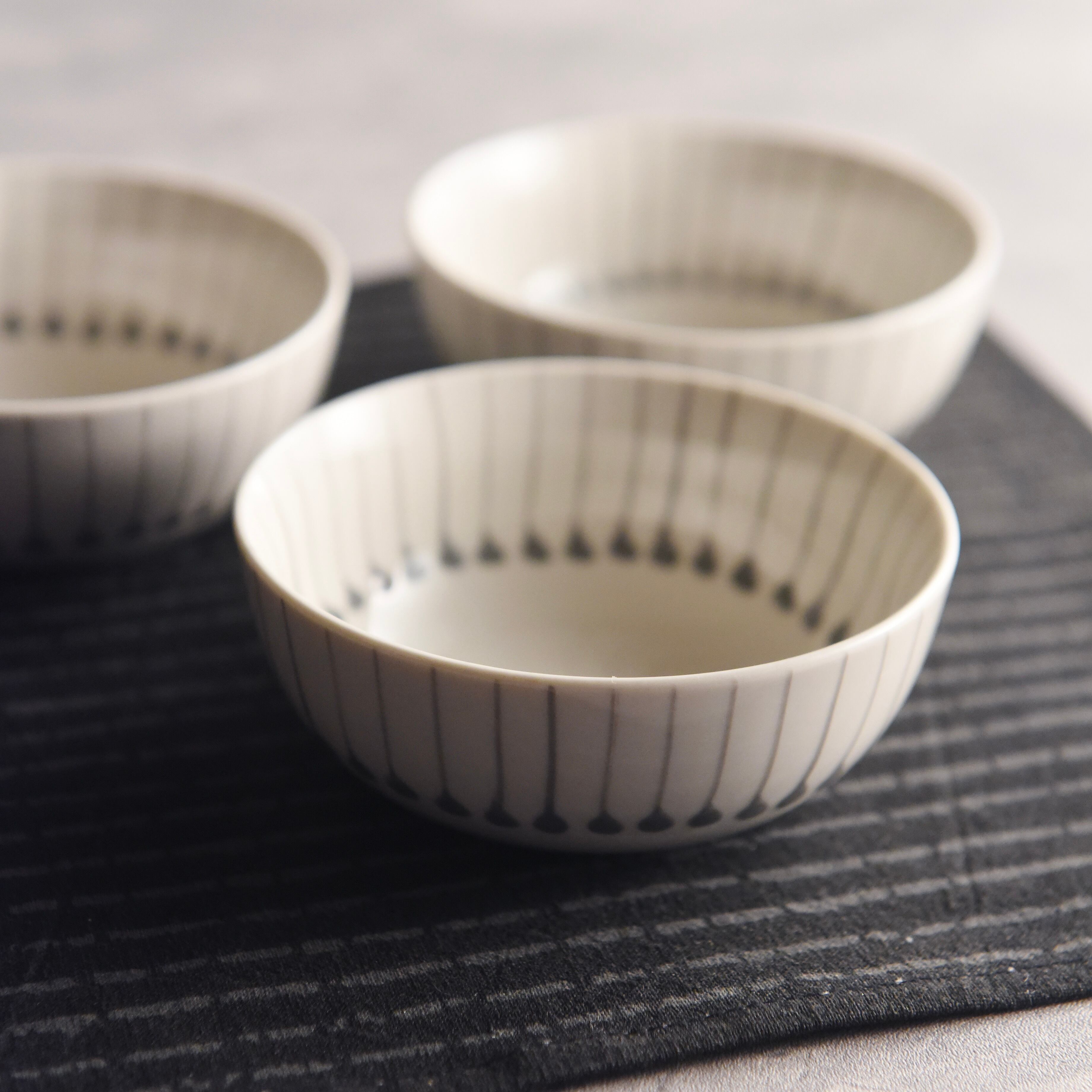 やさしい色味のグレーの釉薬を使い、しずく型と細いラインを組み合わせたシンプルな模様。