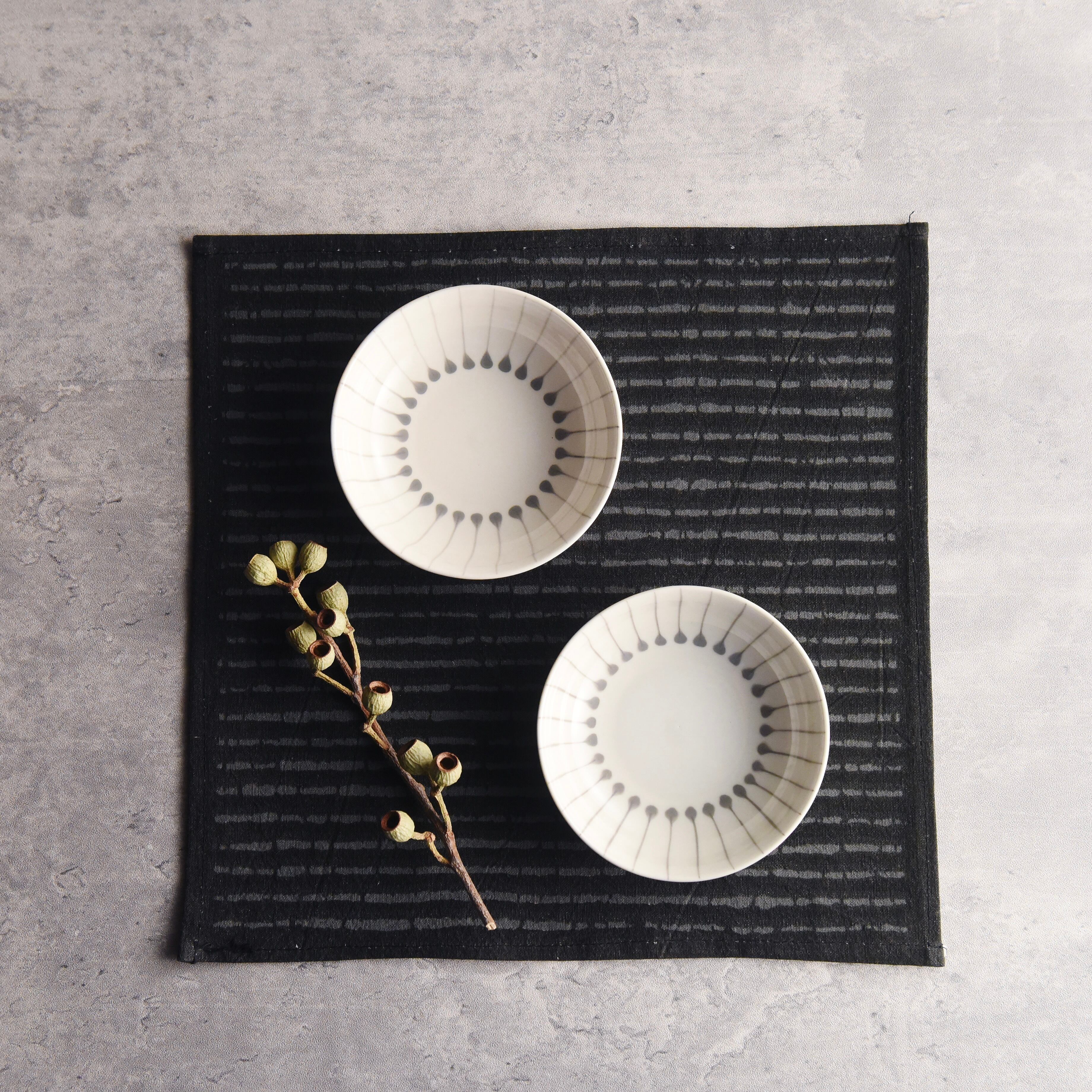 やさしい模様のアクセント グレーライン柄 豆皿(小皿)【バッチャン(Bát Tràng)焼】<from Vietnam>