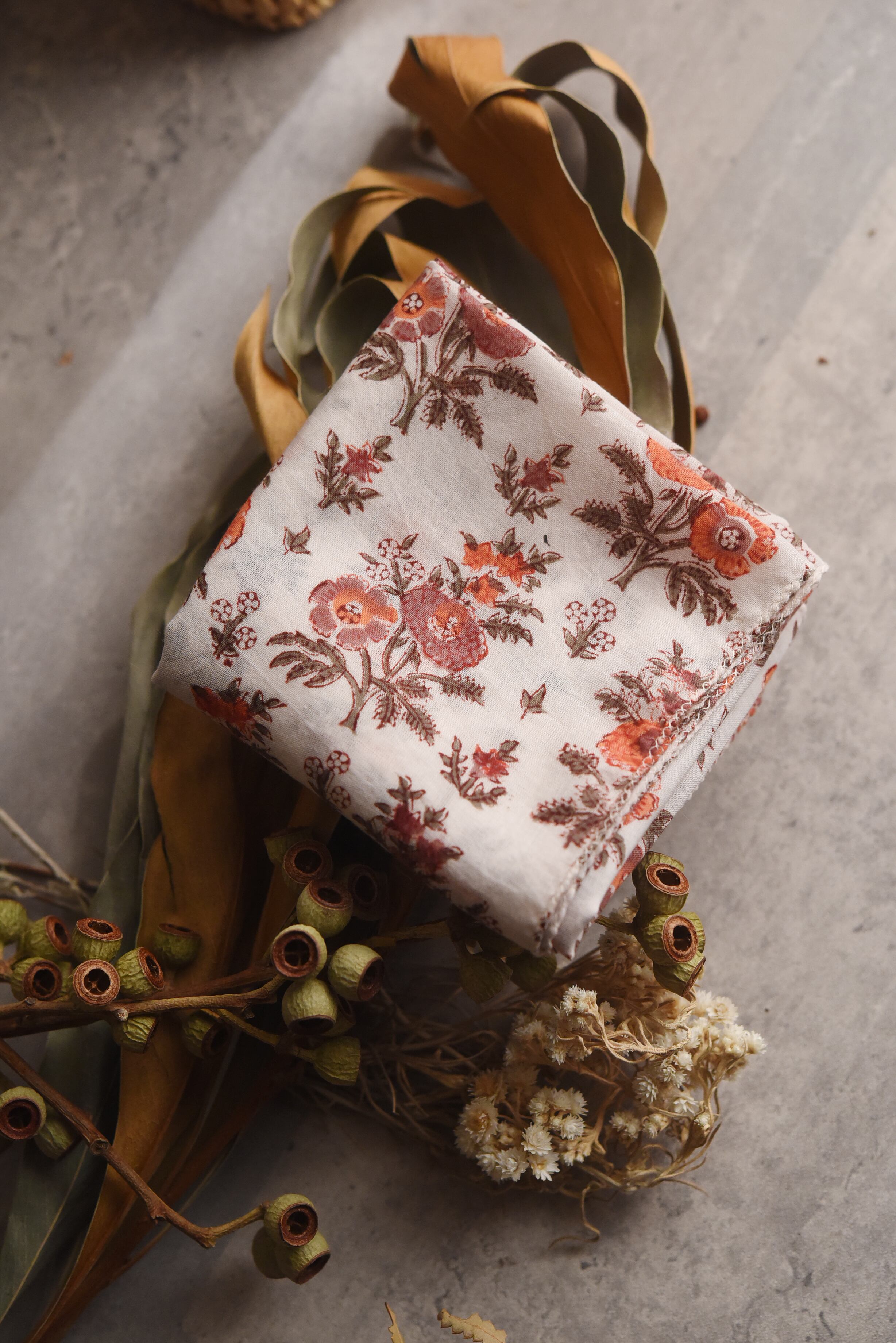【Anokhi】誰かに見せたくなる ブロックプリントの大判ハンカチ/Handkerchief large 45x45 <from India>