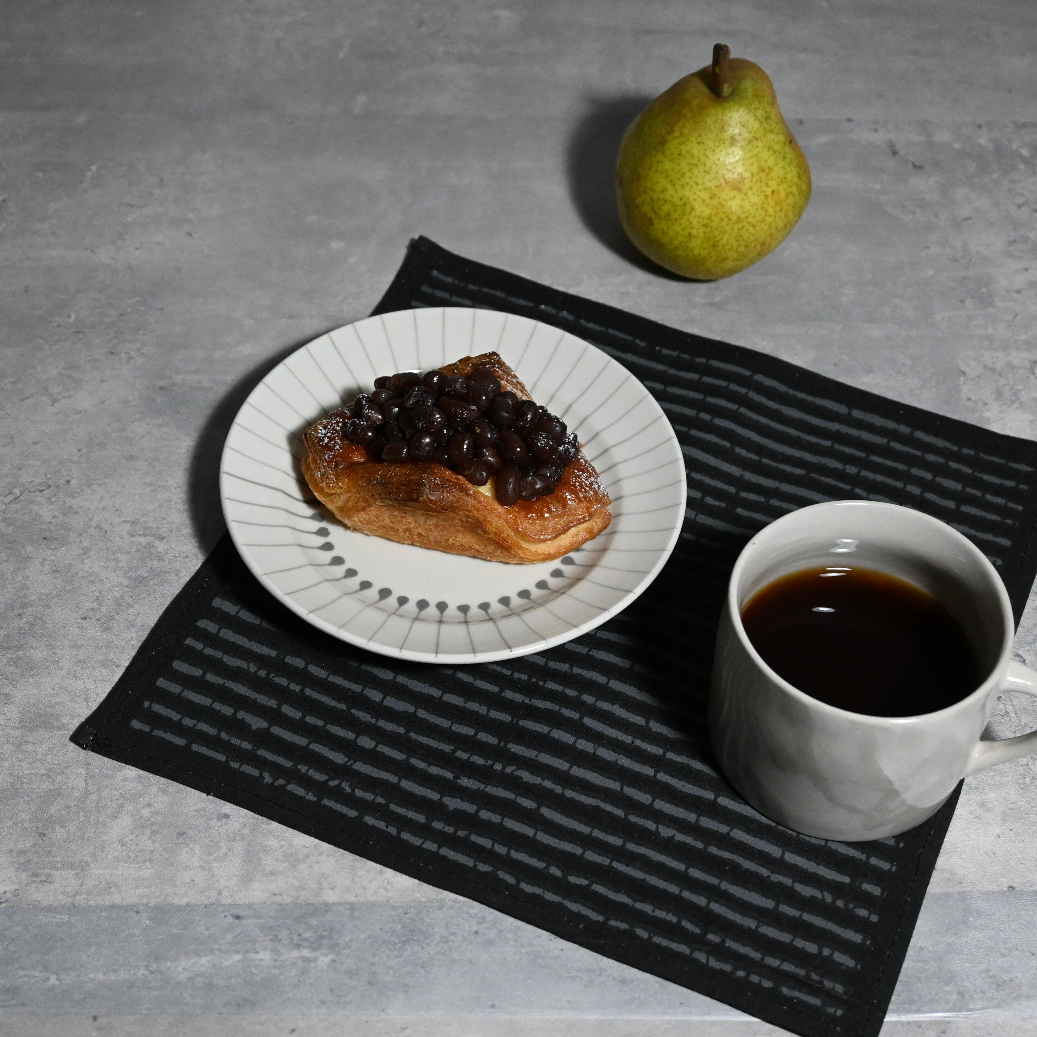 深い黒を楽しめるデザインは、食卓に1枚添えるだけでテーブルコーディネートが引き締まります。