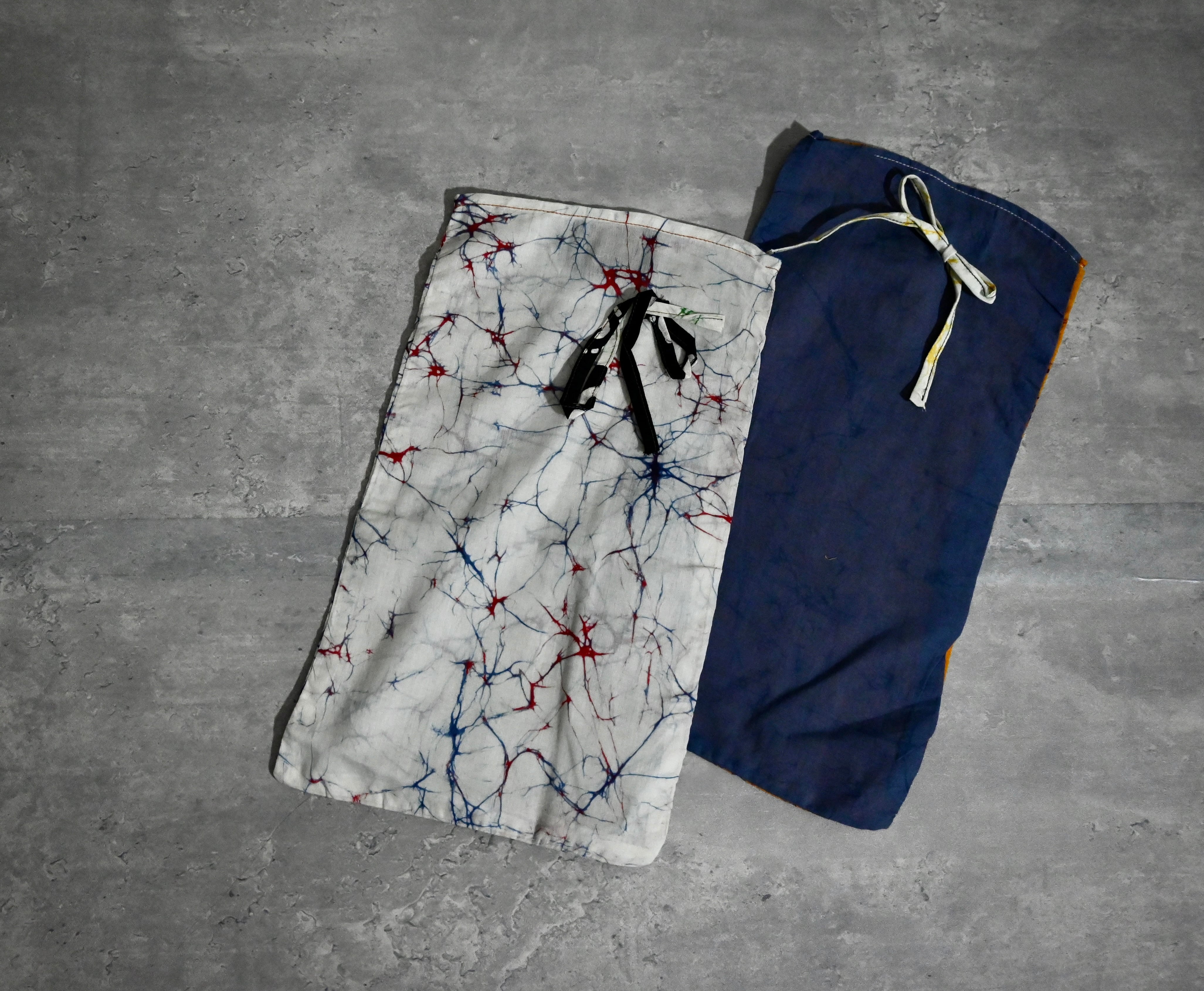 袋に縫い付けられた紐も、ランダムに組み合わせられています。
