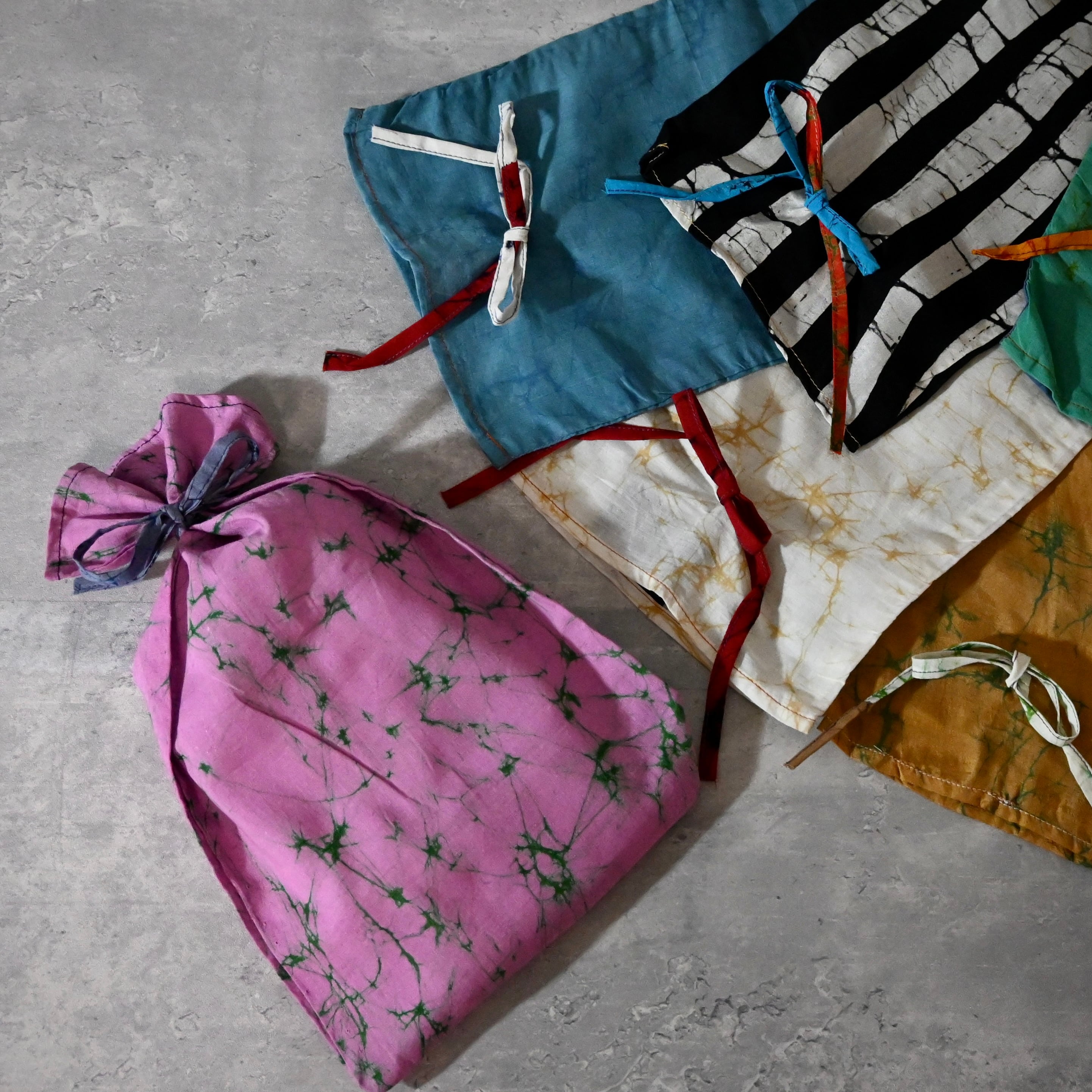 スリランカの伝統的な染色技法「Batik(バティック)」で染められた生地の、端切れを活用して作られたギフトバッグ「Mサイズ」です。