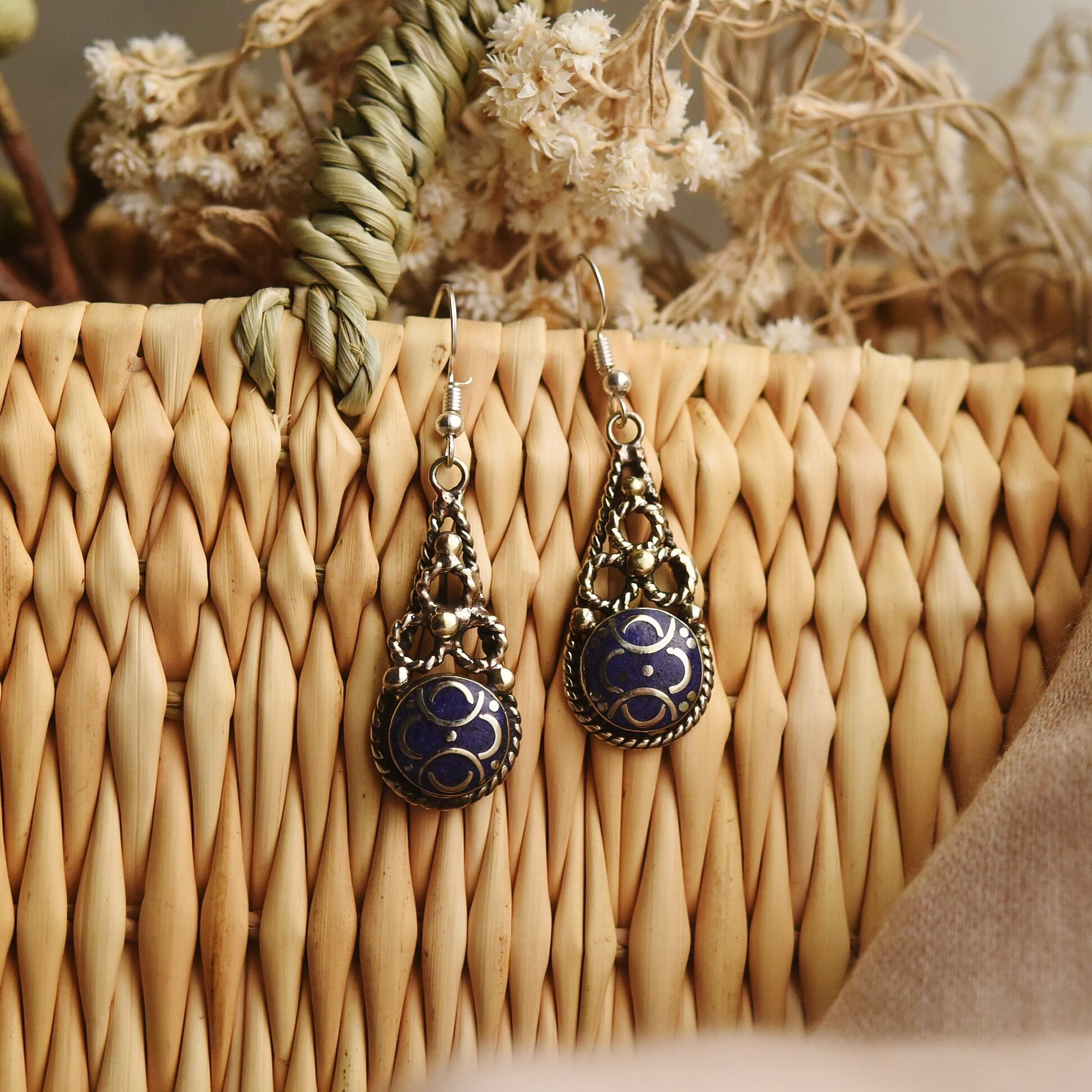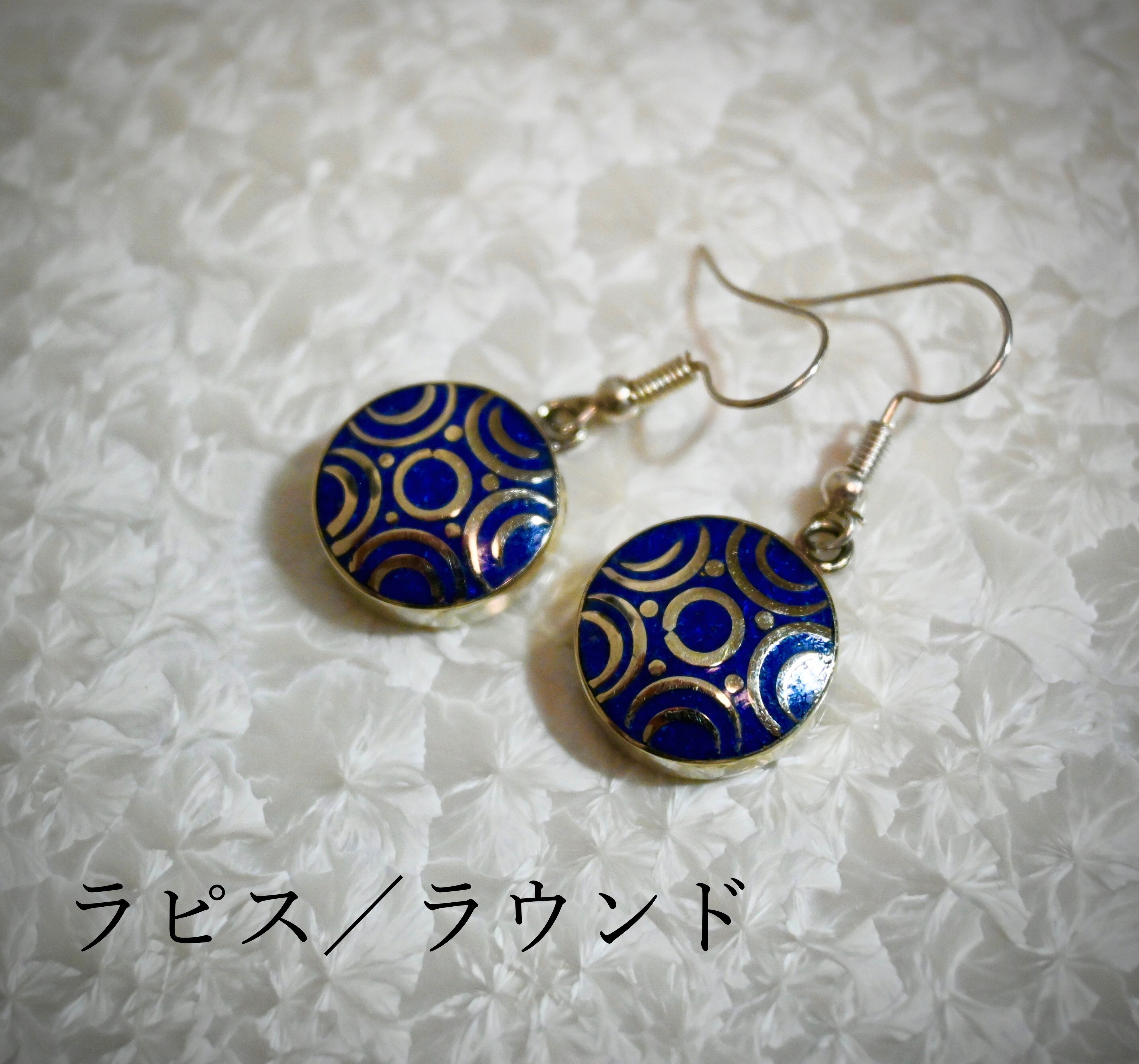 ネパールの青を身につける ストーンピアス<from Nepal>