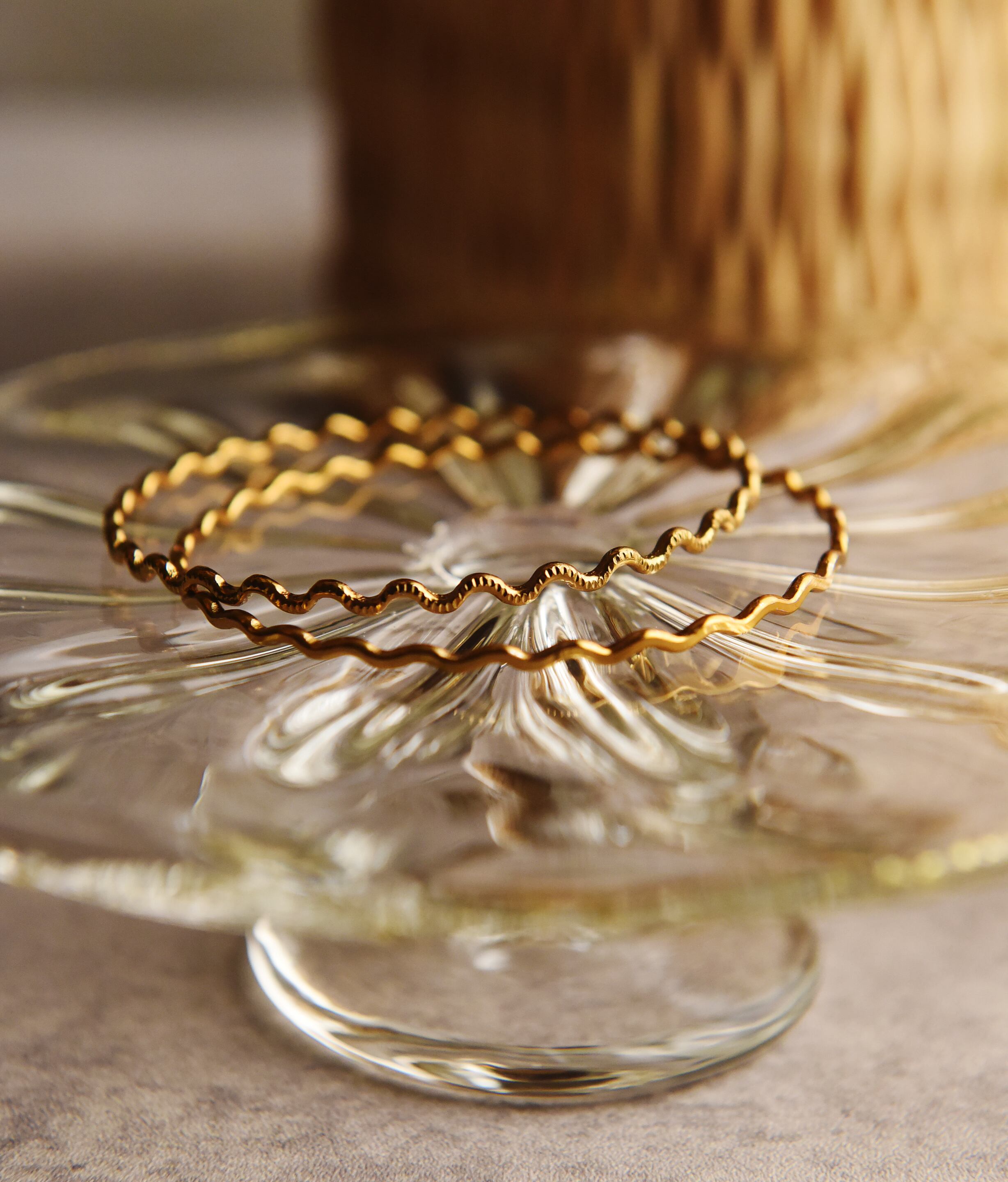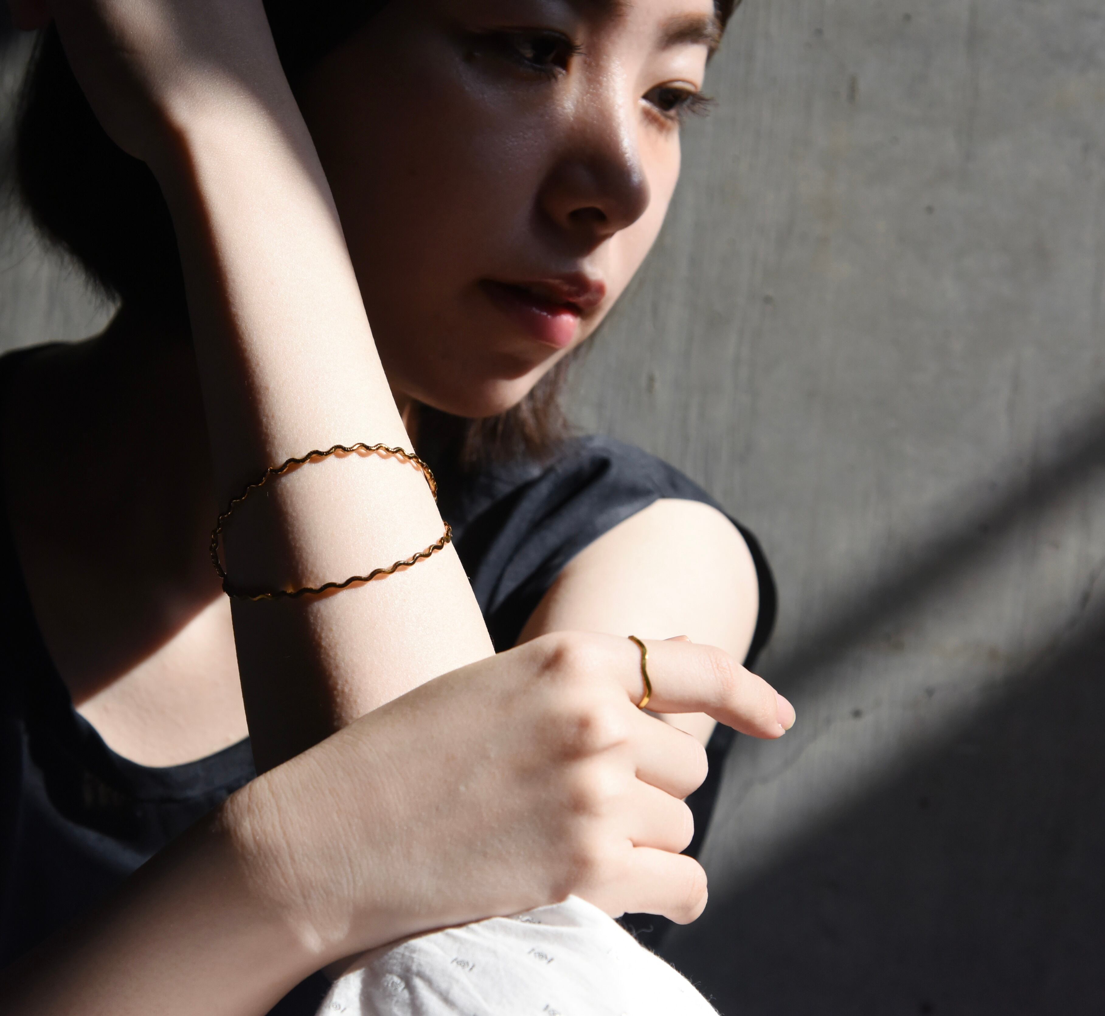 手元にさりげないアクセントを与えてくれる、波打つ2本のブレスレット。