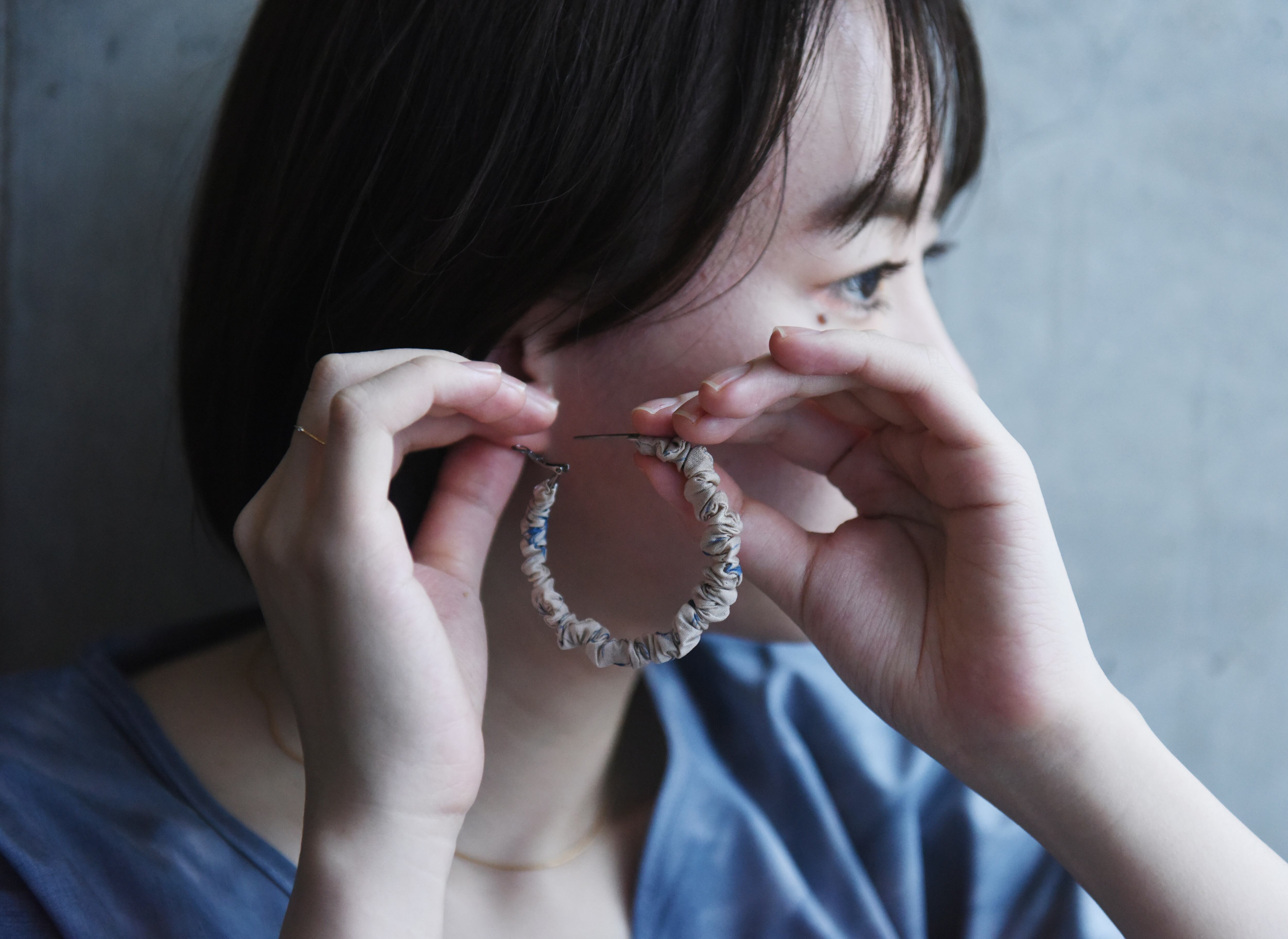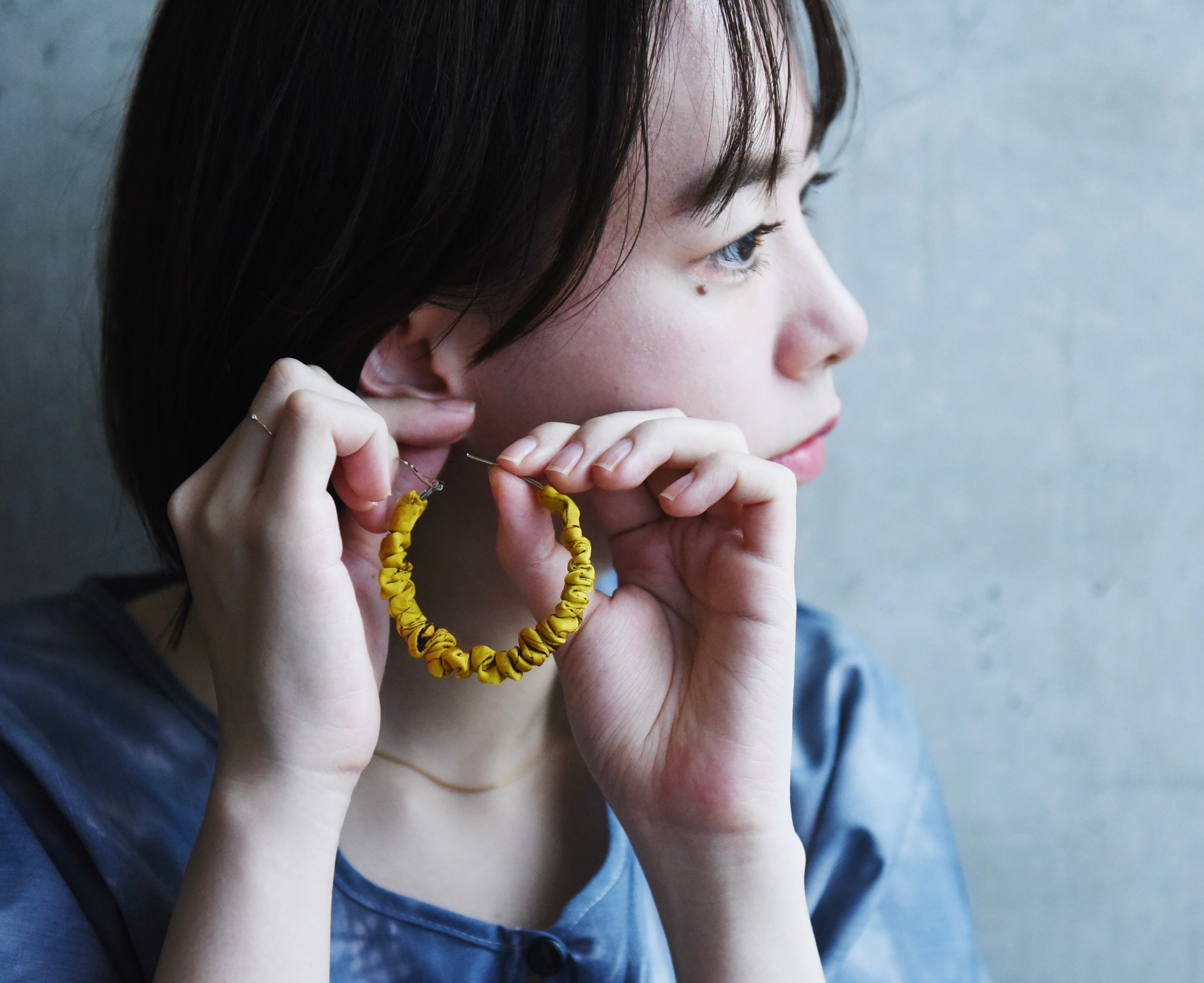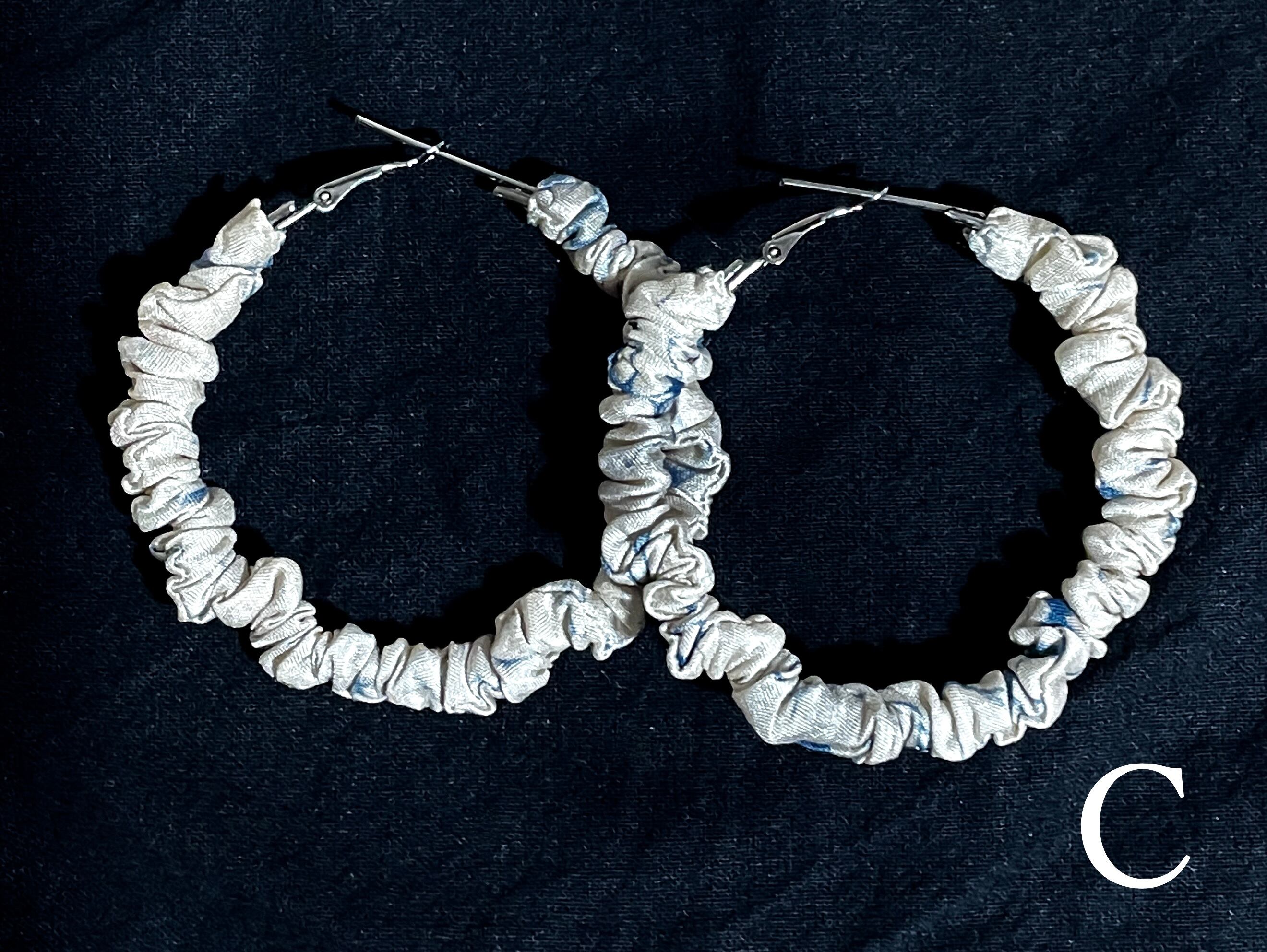 スリランカの伝統的な染色技法「Batik(バティック)」のサテン生地を使ったフープピアスです。