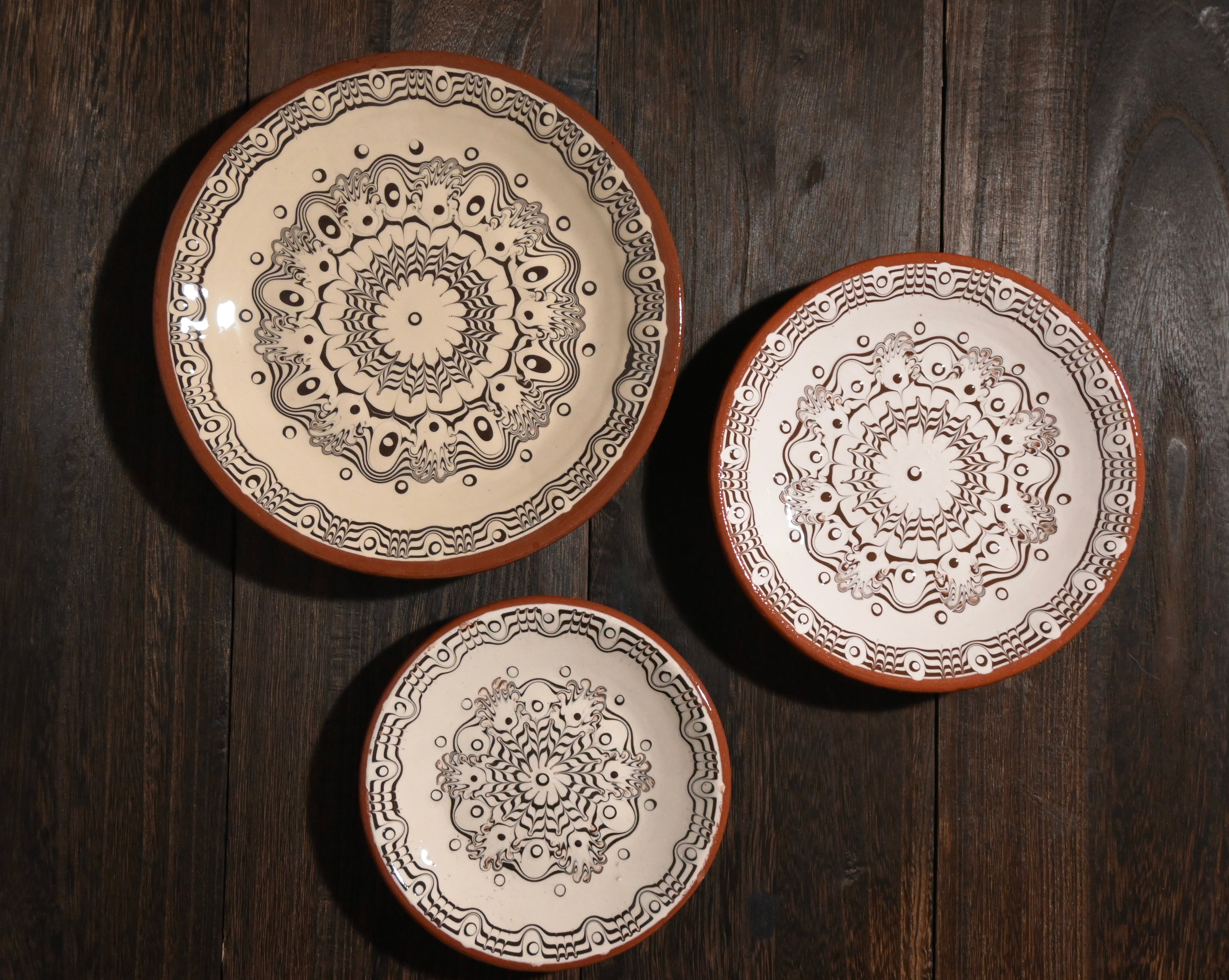 ブルガリアの陶器職人が、一つ一つ丁寧に手作りした、伝統のトロヤン陶器のプレート。